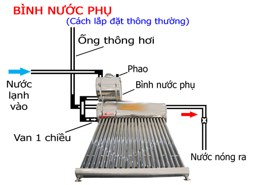 Nếu không chọn phương án lắp đặt bồn dẫn nước khách hàng có thể chọn lắp đặt bình phụ dẫn nước qua bình bảo ôn